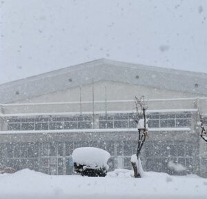 雪の中の弘前市民体育館